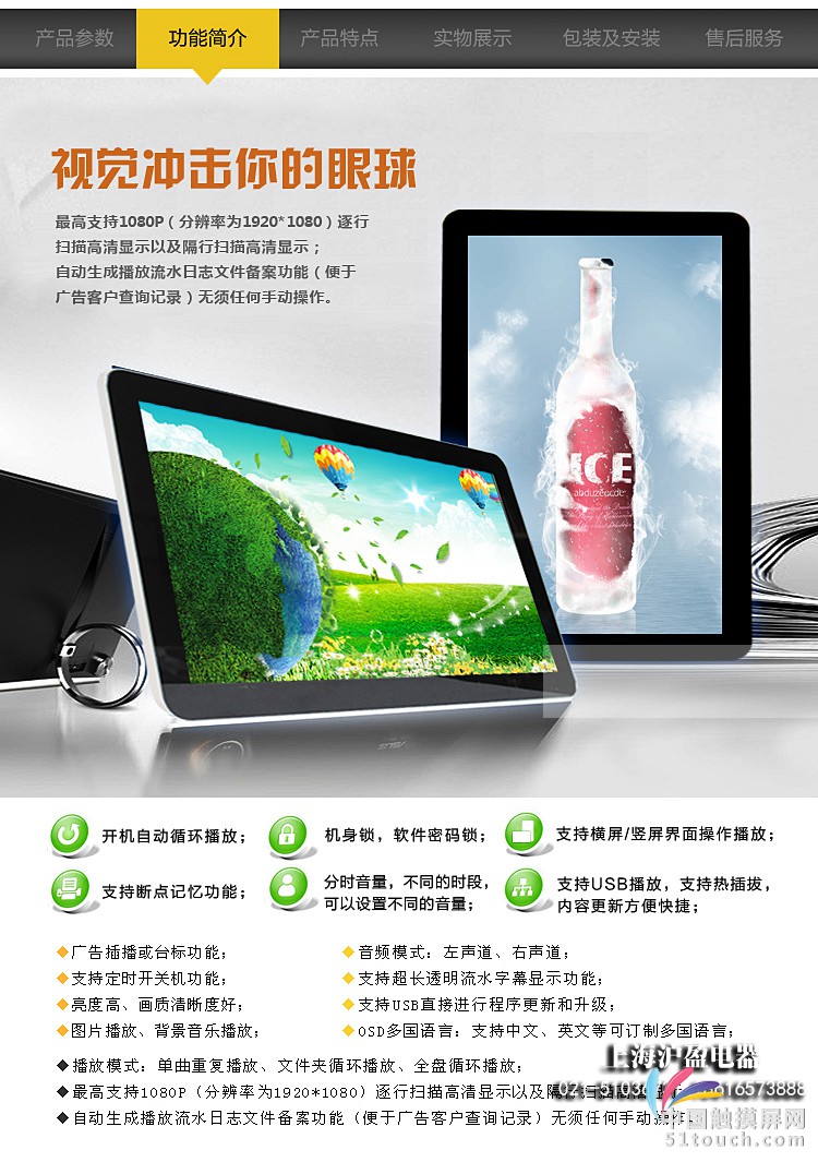 本公司主要生产17-84寸广告机、触摸查询一体机、触摸显示器、拼接屏