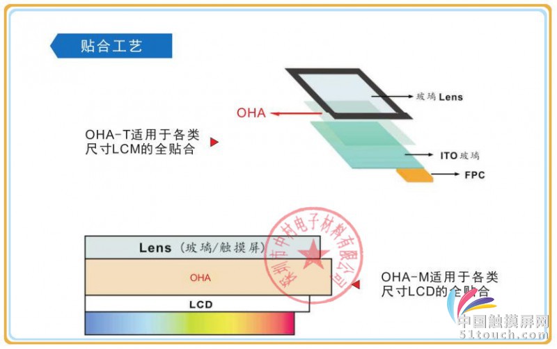 OCF膜应用于触屏生产已经有3年多的历史,经数家厂商的使用其制作的产品满足技术要求。应用的贴合工艺经过不断的改进配套设备已趋于成熟,OCF膜的使用会给客户带来优质、经济的产品。OCF光学透明膜及工艺特点简介:1 优异的光学性能:透光率96%以上,对ITO膜无腐蚀性。2 防爆膜的功能: OCF的高强度高分子材料,抗张强度远胜于OCA,贴合屏幕无需再贴3 材料贴合:能适用于各种材料的贴合,适用范围宽,对于多种材质均有很好的粘结能力,应付复杂界面的贴合更显突出优势. 4 补差能力强:对于不平整的表面OCF的热可塑性完全可以填平凹陷之处,易于调整,膜片厚度100Um ~200Um,膜片处理简单防爆膜。,易于模切。5尺寸使用范围:适用产品的规格尺寸范围广,无尺寸界线适用从手表到彩电等各种产品的大、小尺寸全贴合屏幕。使用OCF可有效解决较大尺寸的TP/LCM全贴合,对于产品的色彩呈现和清晰度远超过传统的含空气层口字胶。6 效率:使用OCF膜的触屏全贴合工艺条件简单,相对OCA胶工艺路线短,操作简单方便,加工周期短,可大批量连续生产。7 设备成本:工艺配套设备相对OCA胶设备造价大幅降低,设备操作简单,维护费用低。8 成品率:使用OCF膜生产一次成品率大于95%,不良品可在固化前现场返工,主材无损耗可大幅降低生产成本